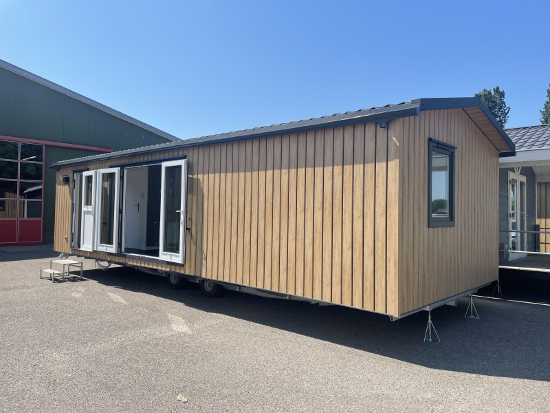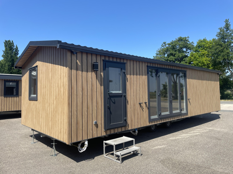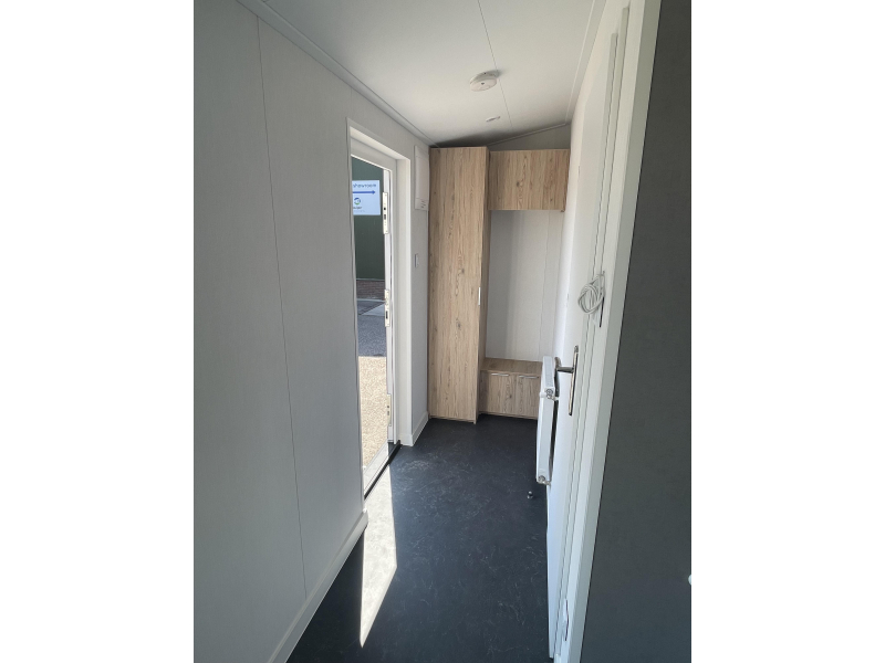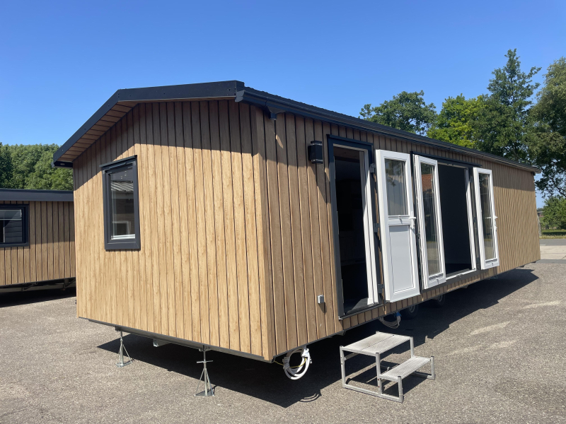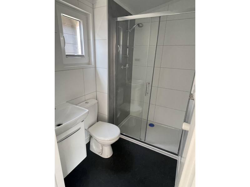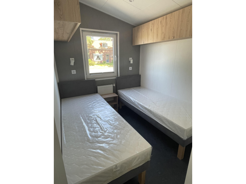 Dit middenkamer chalet heeft een zeer efficiete indeling met naast de tuindeur mooie zijlichten zodat er veel licht binnen komt. Naast de keuken zit er een vaste bank in wat de eethoek efficient indeelt. Dit chalet middenkamer is werkelijk van alle gemakken voorzien van vaatwasser tot koel/vriescombinatie. Het chalet is voorzien van ruime douche cabine en ruime slaapkamers voorzien van voldoende opbergruimtes. Dit middenkamer chalet is goed geisoleerd zodat het in de winter lekker warm blijft en in de zomer koel.