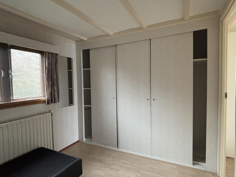Er zijn in dit chalet twee slaapkamers. De eerste slaapkamer heeft nu een eenpersoonsbed bed, maar hier zou een tweepersoonsbed ook goed in passen of twee eenpersoonsbedden. Deze kamer heeft ook een grote kastenwand waar u al uw spullen en kleding in kwijt kunt. De tweede Kamer heeft ook een eenpersoonsbed. Deze kamer zou ook anders ingedeeld kunnen worden, door er bijvoorbeeld een stapelbed of hoogslaper in te plaatsen.