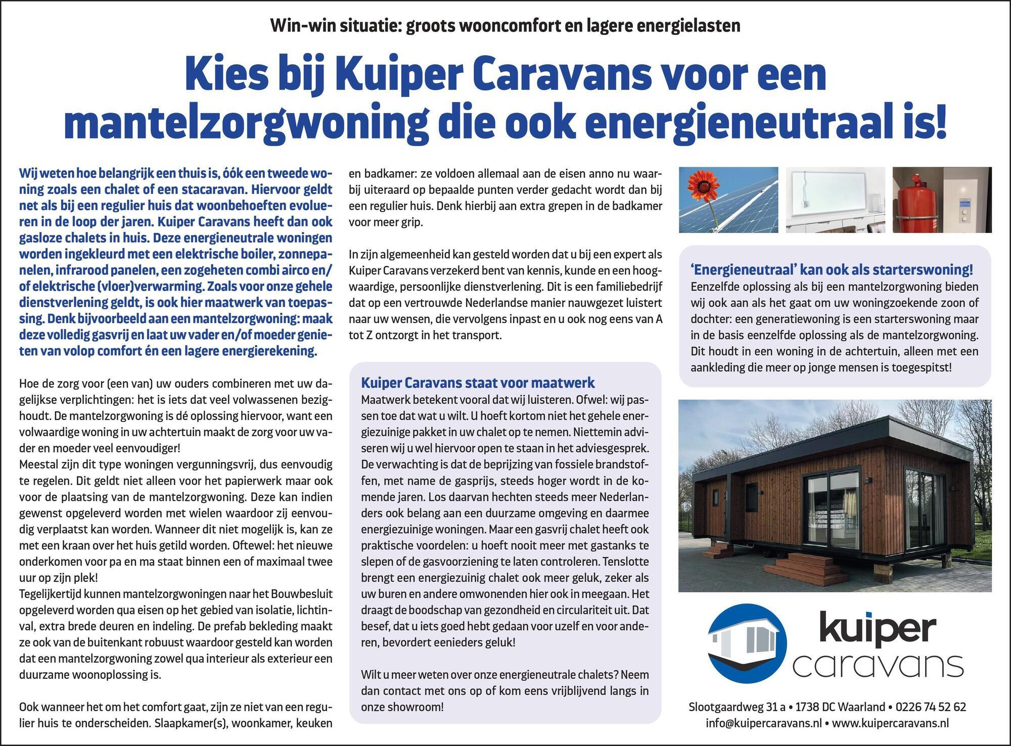 In zijn algemeenheid kan gesteld worden dat u bij een expert als Kuiper Caravans verzekerd bent van kennis, kunde en een hoogwaardige, persoonlijke dienstverlening. Dit is een familiebedrijf dat op een vertrouwde Nederlandse manier nauwgezet luistert naar uw wensen, die vervolgens inpast en u ook nog eens van A tot Z ontzorgt in het transport.